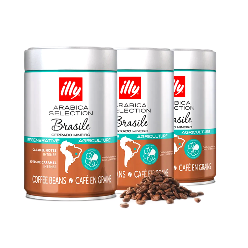 Illy coffee beans are packed under pressure in a metal can with inert gas, allowing freshness to be preserved for up to 25 months.