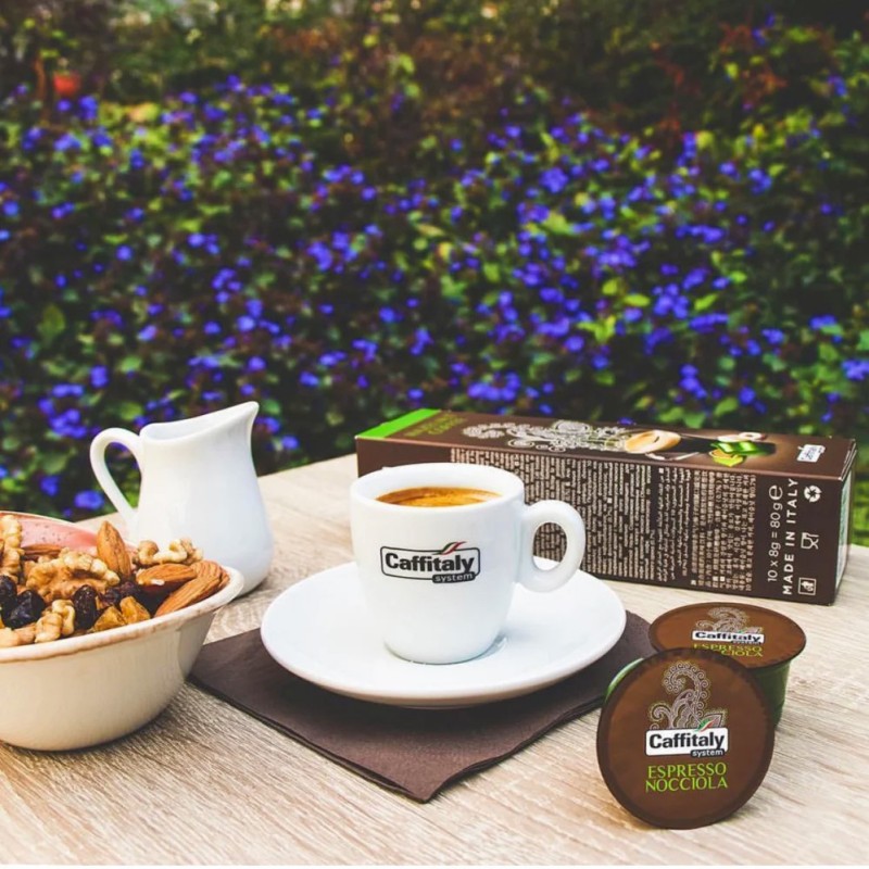 The Caffitaly System Espresso Nocciola coffee combines the intensity of an authentic Italian espresso with the warm and persistent aroma of roasted hazelnuts. This premium selection is ideal for moments when you crave a special treat, offering a balanced body and a dense crema, enriched by the sweet and nutty notes of hazelnut. Each capsule contains 8g of finely ground coffee, ensuring a perfect extraction at the standard espresso volume. We provide fast delivery in Chisinau and all of Moldova.