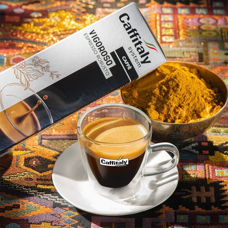 The Caffitaly System Vigoroso coffee is the ultimate choice for those seeking a powerful energy boost and an untamed flavor. This special blend combines dark-roasted Arabica and Robusta beans to achieve a maximum intensity of 10/10. The result is an espresso with an extremely dense body, long-lasting crema, and deep notes of bitter cocoa and fine wood. It is the perfect coffee for mornings when you need a vigorous start. We provide fast delivery in Chisinau and all of Moldova.