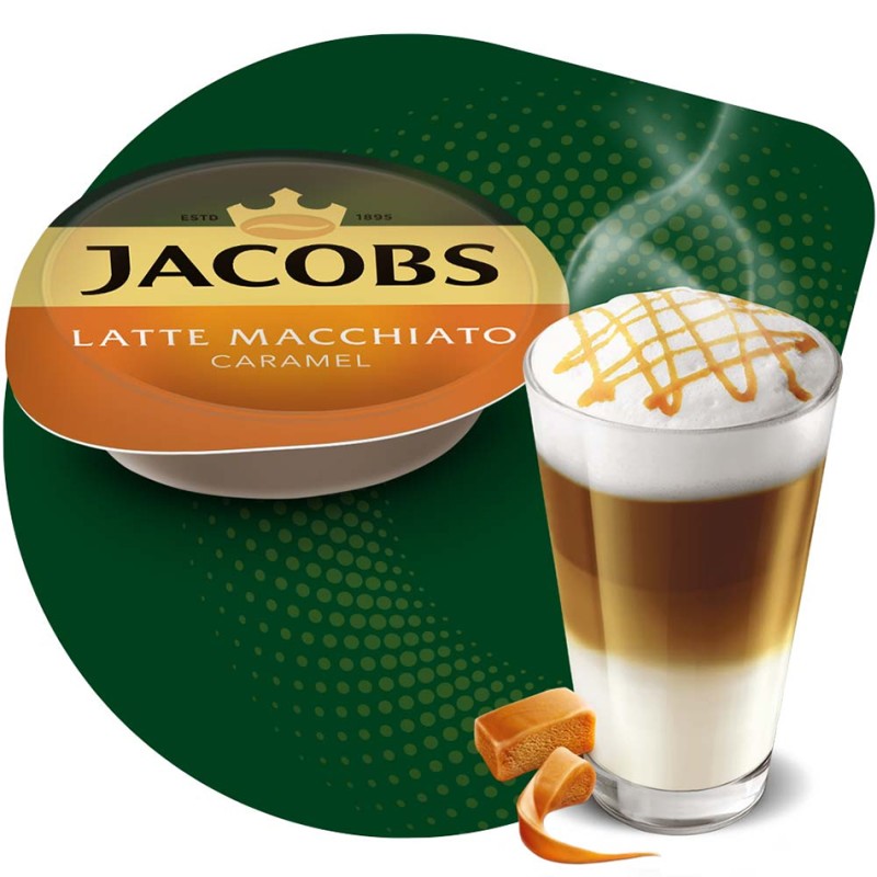 Jacobs Latte Macchiato Caramel îți aduce acasă o băutură stratificată cu trei niveluri de plăcere: lapte spumos, espresso aromat și un strop fin de caramel. Fiecare porție conține două capsule: una cu lapte cu aromă de caramel și una cu espresso Jacobs, pentru o experiență desăvârșită de barista, direct din aparatul tău Tassimo Bosch.