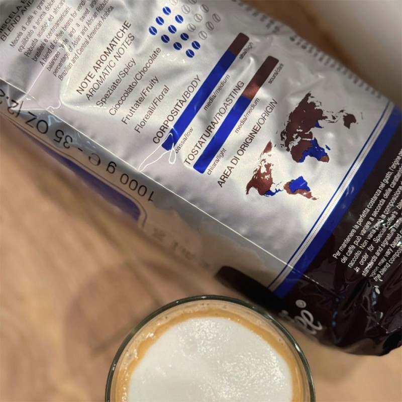 Смесь даёт плотное тело, густую крепкую крему и стойкое насыщенное послевкусие, с приятной сладостью в аромате. Подходит для эспрессо, длинного кофе (lungo) и напитков на основе молока — дарит заряд и вкус каждому глотку.