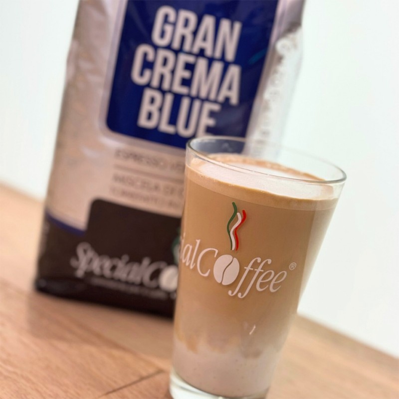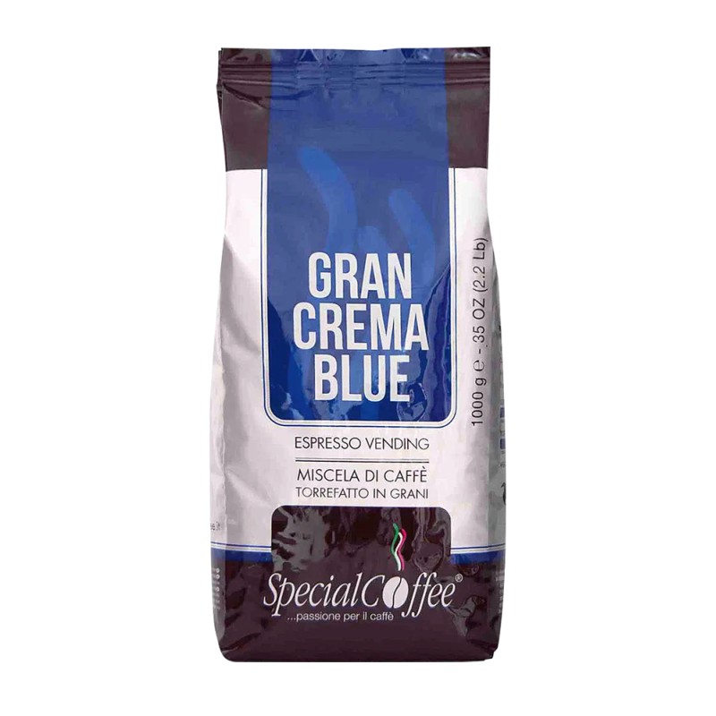 Gran Crema Blue SpecialCoffee — смесь кофе в зернах, обжаренная в Италии, создана специально для автоматов вендинга. Содержание около 15 % Арабики и 85 % Робусты — характер, сила и сбалансированная сладость.