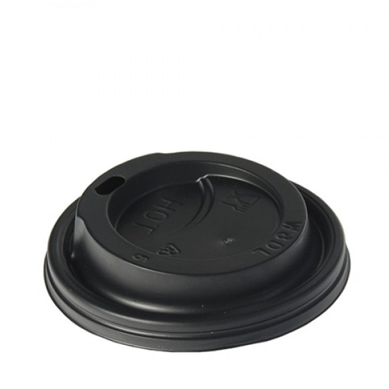 Крышки черного цвета d-9 см идеально подходят для герметичного закрытия бумажных стаканов объемом 400 мл.
