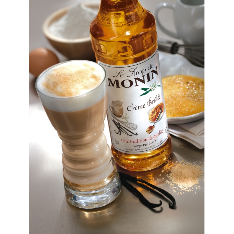 Сироп Монин Крем Брюле – десерт, приготовленный на основе молока, сливок, желтков, ванили и коричневого сахара. Благодаря тому, что его поверхность обрабатывается с помощью очень высокой температуры, он приобретает уникальный вкус.