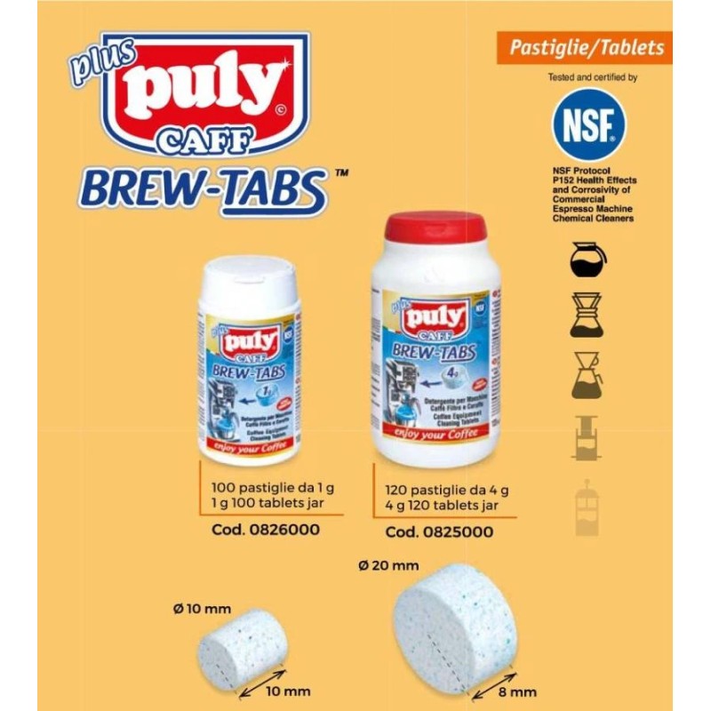 Таблетки Puly Caff Brew Tabs — идеальное решение для тщательного обслуживания оборудования типа filter drip, капельных кофеварок и термосов. Их концентрированная формула разработана для быстрого растворения окисленных кофейных масел, которые накапливаются на стенках аппаратов, устраняя неприятный горький привкус. Продукт сертифицирован NSF, что гарантирует отсутствие токсичных остатков и запахов после использования.